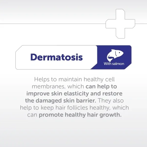 One of the biggest benefits of this diet is its high content of Linoleic Acid (LA), an essential n-6 polyunsaturated fatty acid that must be provided in the diet of dogs. Linoleic acid is incorporated into the skin’s ceramides, improving its tightness and strengthening its function as a protective barrier. This helps protect the body against external factors, reduce excessive water loss, and alleviate symptoms of ingredient and nutrient intolerances.